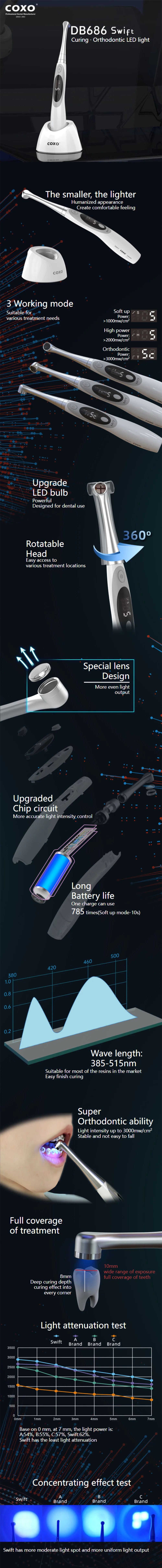 COXO Dental Curing Light DB686 Swift Caries Detector LED Lamp Wireless Curing & Orthodontic LED Light Dentistry Equipment
